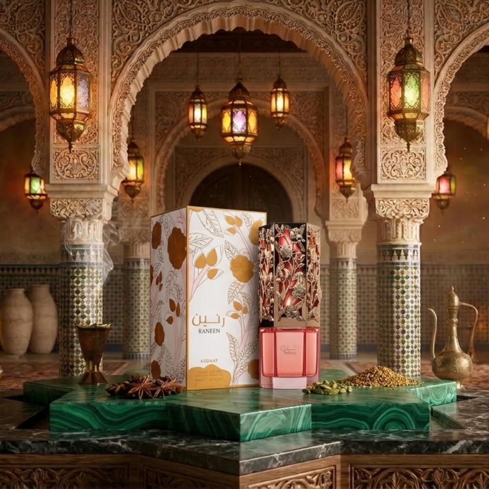 Raneen Asdaaf este un parfum dedicat femeilor și aparține familiei olfactive Floral-Fructat-Gourmand . Gândit ca o sărbătoare a prospețimii și a eleganței, acest parfum este creat pentru femeia care îmbrățișează farmecul și frumusețea fiecărei clipe .