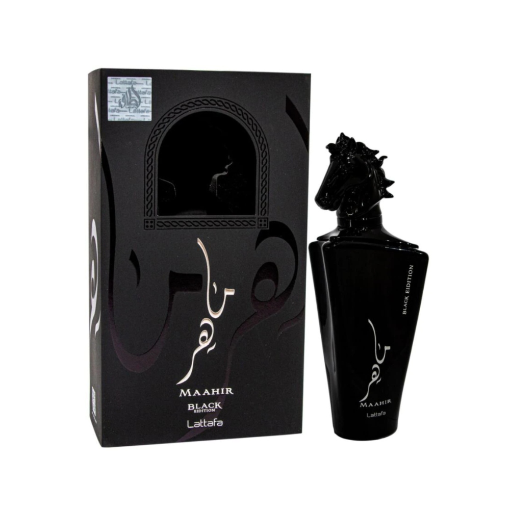 Lattafa Maahir Black Edition este o apă de parfum unisex, lansată în 2019, care aparține familiei olfactive Oriental Lemnos-Picante . Este diametral opusul prospețimii lui Maahir Legacy și chiar diferit de opulența afumată a lui Maahir Gold. Acesta este un parfum construit în jurul fumului, al lemnelor uscate și al pielii.