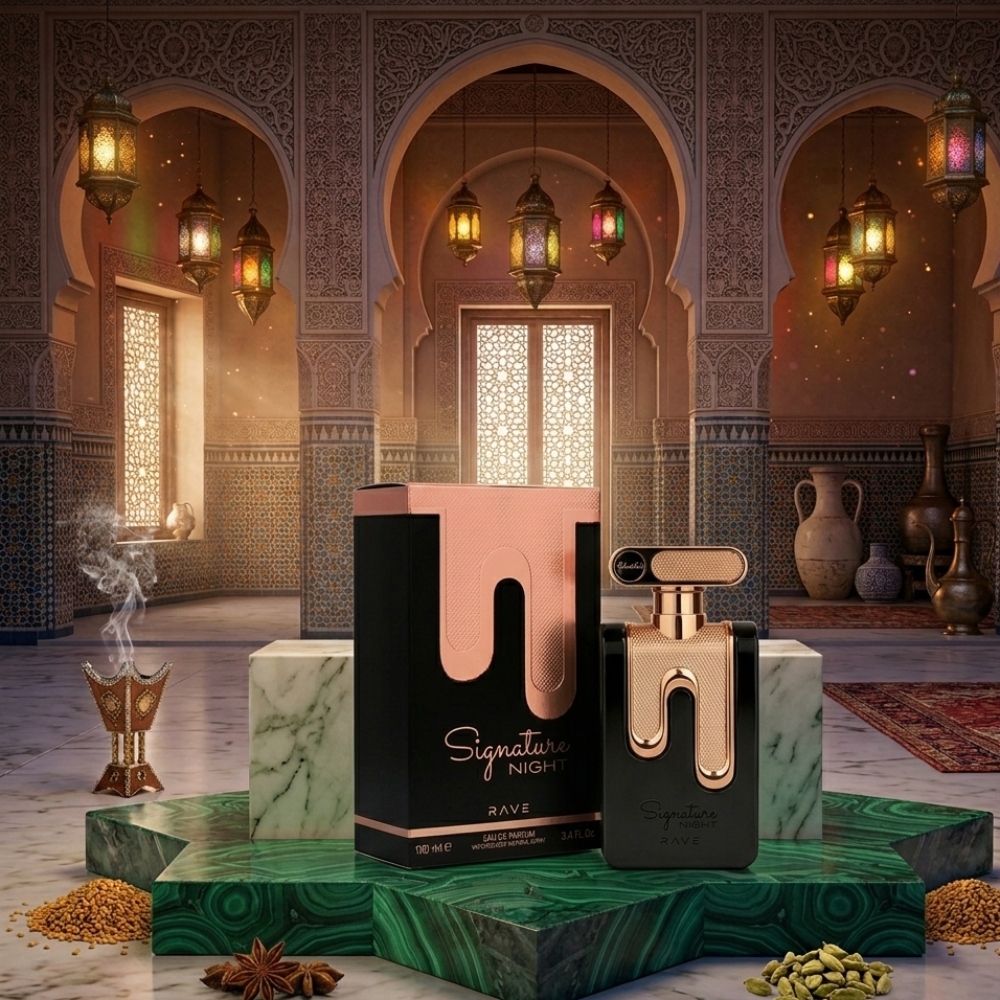 Rave Signature Night este un parfum dedicat femeilor, lansat sub brandul Rave, care face parte din grupul Lattafa Perfumes . Acesta este un Eau de Parfum (apă de parfum) disponibil în format generos de 100 ml . Face parte din colecția „Signature Night” a brandului și a fost creat pentru a fi o alegere ideală pentru evenimentele serale, acolo unde eleganța și misterul sunt esențiale .